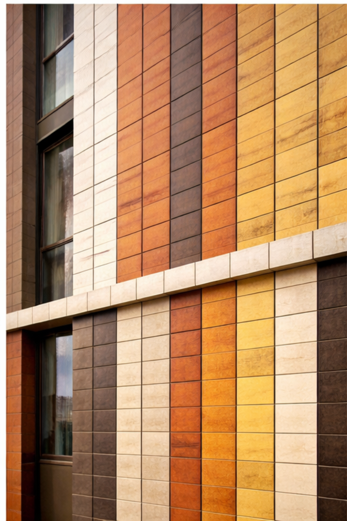 Keramik ist formstabil, UV-beständig, frostresistent und nicht brennbar. Dadurch eignet sie sich besonders für dauerhaft hochwertige Gebäudehüllen.