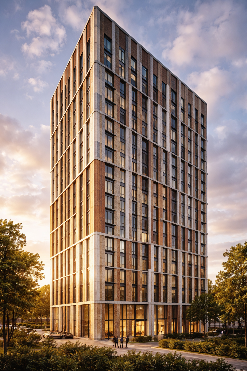 Die vorgehängte hinterlüftete Keramikfassade ist ein mehrschichtiges Fassadensystem, bei dem Tragwerk, Dämmung und Bekleidung konstruktiv voneinander getrennt sind. Diese Entkopplung sorgt für bauphysikalische Sicherheit, Langlebigkeit und gestalterische Präzision.