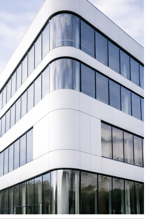 Die Silikonfassade zeigt im Detail ihre eigentliche Stärke: eine ruhige, homogene Oberfläche kombiniert mit präzise ausgeführten Anschluss- und Fugenbereichen. Besonders bei Großprojekten mit klarer Linienführung und großzügigen Glasflächen kommt die Materialwirkung voll zur Geltung.